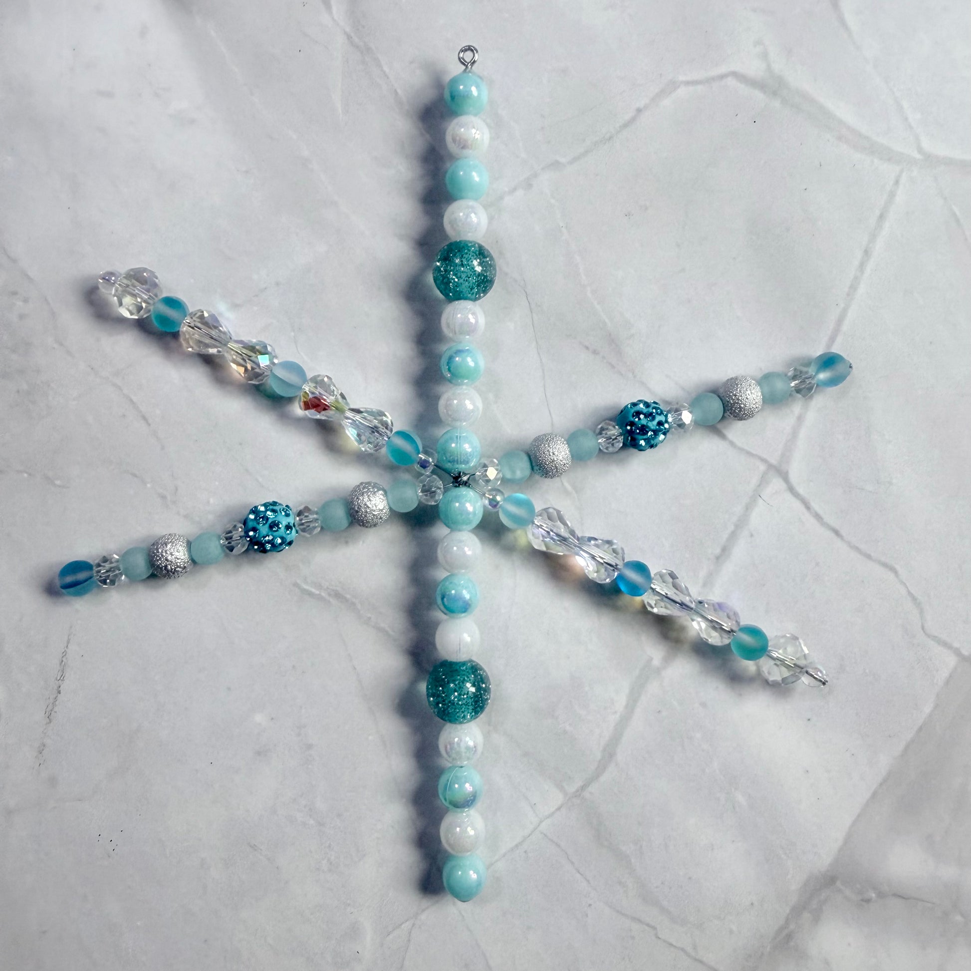 Blue/Silver/White Hand Beaded Snowflake Ornament